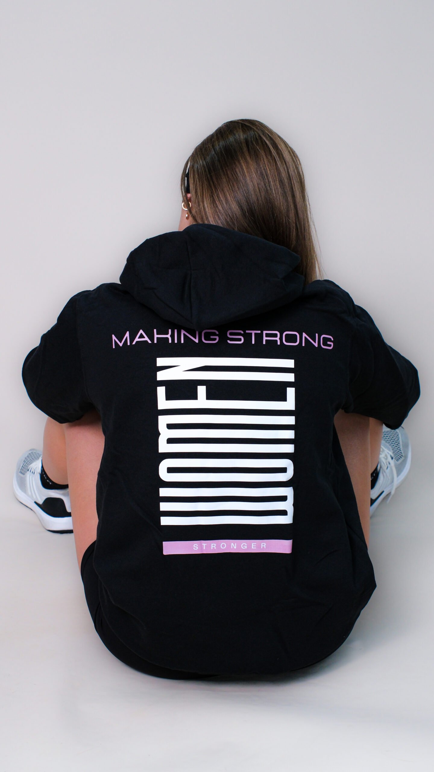 The front features the minimal FitHer logo, while the back showcases our signature empowerment message: MAKING STRONG WOMEN STRONGER—a bold graphic designed to inspire confidence and celebrate strength in every form.
